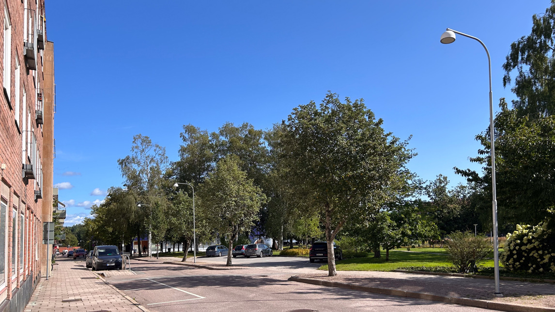 Kornknarrens trygghetsboende med utsikt över stadshusparken i Avesta.